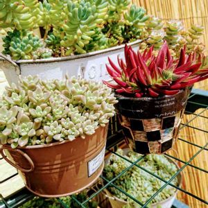お疲れ様で~す👍 やっと帰って来ました🚐 明日は花の金曜日💃 みなさん、もう一息です🎵 今朝、ガーデニングテーブルにずっと放置の子達をパシャリ📸してから出勤しました😆✨ 多肉ちゃんの季節ですね❤️