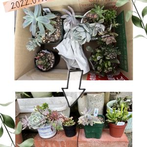 こんにちは✨ 今日は 息子からの 多肉プレゼントが到着🚚💨 楽天ポイントが貯まったので 欲しい物教えて〜❗ と言われて悩む間もなく 急かされて 頼んだものは多肉🤭 到着して驚いた😳😳😳❣️ ネット購入だと 八ヶ岳セレクションの 多肉はモリモリです。 やっぱり、ホームセンターの ものとは 内容が違うんだぁ〜と 驚きました。 2.5号サイズの鉢に はみ出る多肉は ギューギュー詰め😆👍 ホームセンターで 2つ八ヶ岳セレクションの 多肉を買って帰ったけれど 同じものなのに 多肉の量が倍近く違うことに 新しい発見がありました✋
