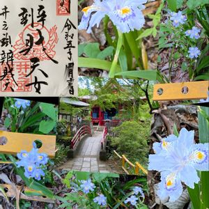 井の頭公園の散策も、中間になると… 木々に囲まれ、シャカの花がたくさん咲いている、弁財天が見えてきた! 真っ赤な建物✨井の頭弁財天✨ 以前は人が多く素通りした😅 今回は参拝し、御朱印も頂きました✌️ ✨ ここは吉祥寺のパワースポット✨ 金運アップ⤴️縁結びの御利益✌️ 武蔵野七福神のひとつ✌️