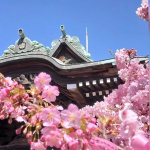 先日のお宮参りの紅梅のお花🌸です。 青空がとても美しかったので 神社の社殿の屋根も入れて撮影しました。 お祝いの日に 晴れ渡る空は とても気持ちいいです。 場所も神社だと 厳かでいいですね*•.❥*