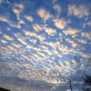 10/4 おさんぽ 早朝気温16℃ 日中気温26℃予報 湿度86% やっと涼しく感じられる天候に なってきました 明るくなってからおさんぽ 出来ました 湿度が高く雪!は直ぐにハアハアに なってしまいましたが いつもより長く歩けて満足して くれた様です 東の空 朝陽 羊雲…