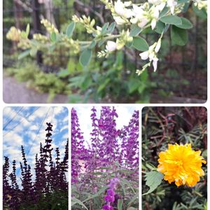 白い萩の花 アメジストセージ 八重ヤマブキの花?一輪…