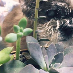 愛犬 大和くんと多肉ちゃん(✿︎´ ꒳ ` )♡︎ 大和くんも多肉で癒され中のご様子( ˶ˆ꒳ˆ˵ )