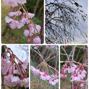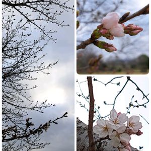 🌸サクラ咲いていました 🌸サクラの木の根元クンクンして 帰り道 別の🌸サクラの木 薄墨桜の様でした…