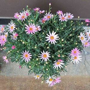 🌼*・サイネリア 𖤣𖥧𖥣。𖡼.𖤣𖥧𖡼.𖤣𖥧⚘𖤣𖥧𖥣。𖥧 𖧧𖤣𖥧𖥣。𖥧 2月に見切り品で50円でゲットした子。 みなさんのアドバイスでざっくり切り戻ししてまた花が上がってきました(((o(*゚▽゚*)o)))✨