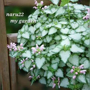 葉っぱがキレイね ラミウム ラミ 🎵 銀色に輝いてるみたい ✨ 今日は 黄砂飛来😣 帽子👒 マスク😷で お庭時間です