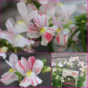 ネメシア フェアリーマーブルピンク 世界初のストライプカラーのネメシアです。* 白い花弁に淡いピンクのストライプが入ります. 今までにない斬新な色合いが魅力的です!