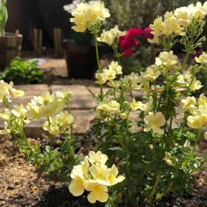 ネメシアレモンフロート。当時唯一の黄色い花でした。 植え付け後1ヶ月ほどです。