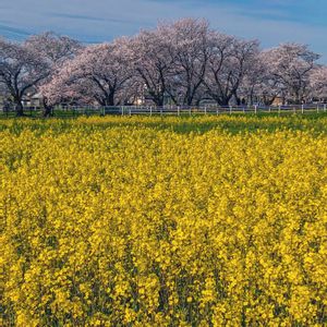 鮮やかな黄色の花畑💛💛 目に焼きついて離れられないほどの風景🥰 桜🌸と共に今日も見られ感謝︎︎•*¨*•.¸¸♬︎