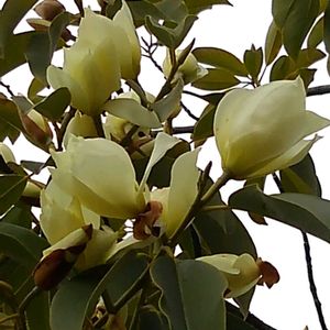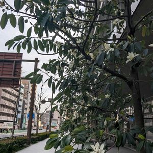 深山含笑(ミヤマガンショウ) モクレン科の常緑高木です 常緑はオガタマノキ属ですか? 💐公園の樹?下枝が剪定されて接写pic 出来ません😢😢😢 下に垂れてる枝は切らないで🙏 お願い🙏(自称📳pマン)