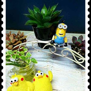 今日の多肉写真のモデルはポインコ兄弟とミニオンズのケビン! ほんとはテディベア持ってるボブが好きなんだけど……。
