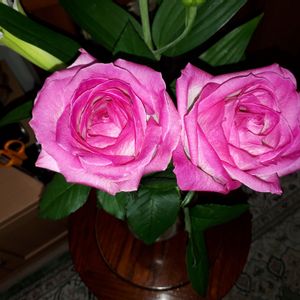 買ってきた😊カサブランカと家のフリージア 剪定したマンサクを 生けました。ちょっと ミスマッチかも⁉️ お部屋は、カサブランカの香りで いっぱいです。👃