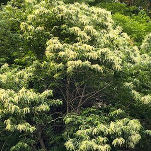 🐦️さんの🎁 庭のナンキンハゼ(南京櫨)の若葉がお花が咲いたように美しく涼しげに見えます✨ 秋の紅葉🍁も冬の白い実🤍も好きです💕 トウダイグサ科 ナンキンハゼ属 花期 6〜7月 原産 中国