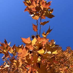 12月14日散歩道🚶♂️🚶♂️快晴 真っ青の快晴 朝陽を浴びる枝先 「フウ(楓)」の黄葉