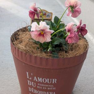 丸顔ビオラちゃん♡ どちらもうえたさんのビオラです✴︎ うえたさんのお花は私好みがたくさんで、いつも迷ってしまうー 手前がビオラ『シャルマンロゼ』 2025年の新品種だそうです。 奥の子は、優しいパステルイエローから目が離せなくて購入。 丸い吊り下げバスケットに寄せ植えしてみました◌⑅⃝*॰ॱ✧˖° みんな元気に、可愛く育ってね!と幸せな気分になります。