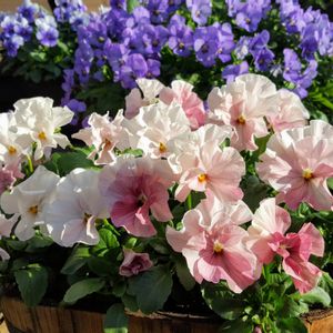 今季は寄せ植え4つ作りました〜☘️✨一番最初に一番気に入ってるの出しちゃおう(*ˊ艸ˋ)♬*✨💗前からやってみたかったカゴ寄せ🧺 ギャザリングで🌿 ビオラ とき乙女ちゃんのカラーに合わせてスタイリングしてみました〜💜 でも結果的には主役はどっちかっていうと葉牡丹のヴィンテージベインですな😅これは💨 記録として︰使用花材 とき乙女 花苗うえた キューティーベイン 花苗うえた ヴィンテージベイン 葉牡丹フレアホワイト 葉牡丹ファミリー 大輪ネメシア ネシア 横田園芸 アラビスバリエガータ ディゴンドラ シルバーフォールズ PWヒューケラ ドルチェ シルバーガムドロップ シルバーレース シロタエギク アリッサムMIX 黒竜 白竜・斑入り竜のひげ