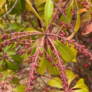 これは、花期が2月~4月のアセビ(馬酔木)のツボミです。 馬が食べると酒に酔ったようになるということで馬酔木😃 自生するアセビの花の色は白が基本なので、これが何色になるか観察してみようと思います😃