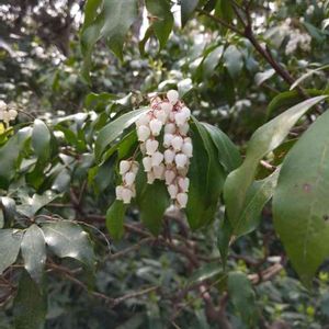 今朝、仙台市福祉プラザの庭園に咲いてます。高さ1メートル位の樹木に白い鈴なりの花が連なってました?