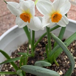 おはようございます😊 GSの今日のお花 スイセン ヒガンバナ科 早春に吾妻山で群生していたお花🤍 2枚目は家の子たち💕 早くも葉っぱは出て来ています❣️ 🏷️白い貴婦人✨ 🏷️白い水曜日♡