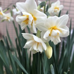 散歩先のニホンスイセン。うちには、八重咲きのスイセンしかない。 みんな南を向いているので、道路からは後ろ向きしか、撮れなかった😓