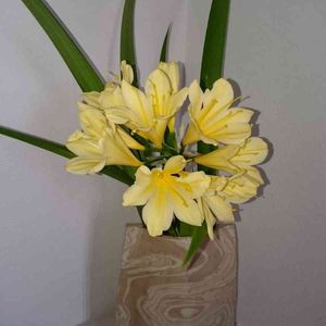 知人のお父さんが株分けした 君子蘭を購入しました。 花は少しは咲きかけていたのですが 見事に咲きました💛薄い黄色のお花 優しいね•*¨*•.¸¸☆*・゚
