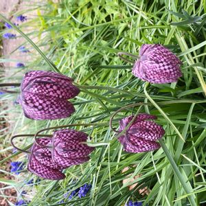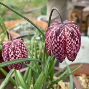 不思議な模様のフリチラリア メレアグリスです。鉢植えにしています。今年は沢山咲いてくれました✨✨。