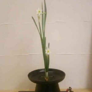 昨日のお稽古花♪ 明日は研究会本番です! 花形 生花一種生 花材 水仙2株