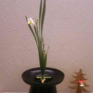 昨日の研究会本番♪ 一年の締め括りは、嬉しい点を頂けました(^-^) 花形 生花一種生 花材 水仙2株