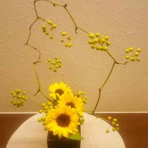 昨日のお稽古花♪ 変形花器でちょっとかっこよく(^-^)