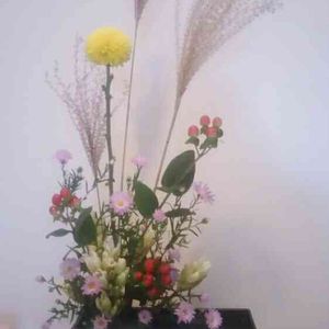 秋晴れですね 今日のお稽古 グロリオサの赤が強い印象と 華やかな雰囲気を醸し出して くれますね💐 秋らしくけいとうやホトトギスも 彩りの仲間に入りました🍁