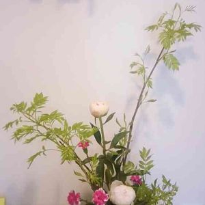 ナナカマドで自由花♪ 芍薬が満開になったらバランスが良くなるように 大きく生けて見ました(^-^) 母の日が近いのでカーネーションも。 芍薬が咲いたらまたアップ予定。