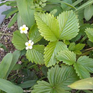 いちご🍓がお安く出回る時期になりましたね😋 毎年5鉢の宝交早生を楽しんでいますが、新入りも迎えました😍 四季なり「なるなる」🌱と白いちごのエンゼルエイト🌱 ワイルドストロベリーはずっと元気です(食べませんが)