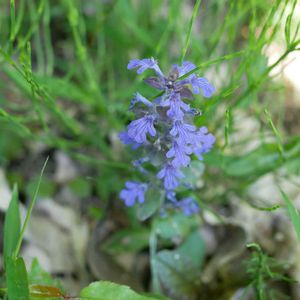 観賞用に栽培されていたのが、逸出して野生化してます。 「美しく青きドヨウ」 セイヨウジュウニヒトエ(西洋十二単) シソ科キランソウ属 別名:セイヨウキランソウ (西洋金瘡小草)、アジュガ。 流通している品種は、アジュガと言うほうが一般的のようです。 北ヨーロッパ原産の常緑多年草の栽培品種です。 花の色は、青紫色の他に、青、桃、白などがあります。 栽培品種として輸入されましたが、野生化が進んでいるようです。 日本原産のジュウニヒトエ(十二単)によく似ていることから、セイヨウジュウニヒトエと名前がつけられました。 また、セイヨウジュウニヒトエは匍匐性で、ランナーを伸ばして増えるので、ツルジュウニヒトエ (蔓十二単) とも呼ばれます。 セイヨウジュウニヒトエ(アジュガ)の花言葉は、「強い友情」、「心休まる家庭」で、4月26日の誕生花です。