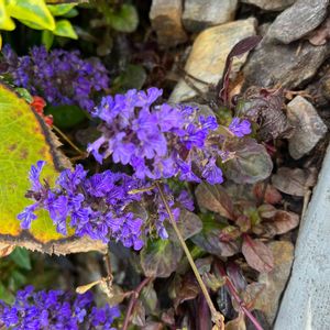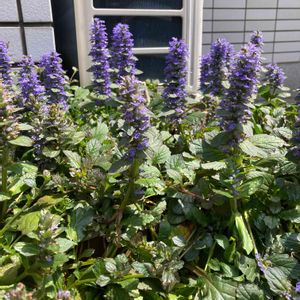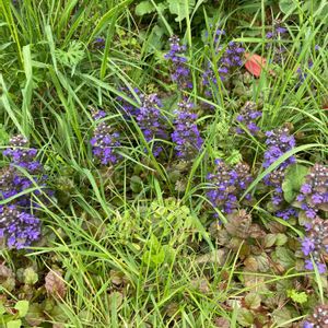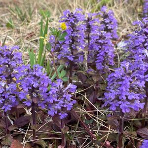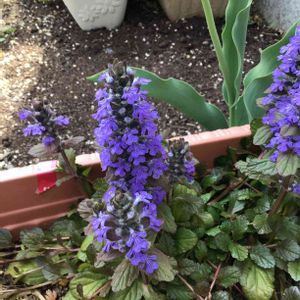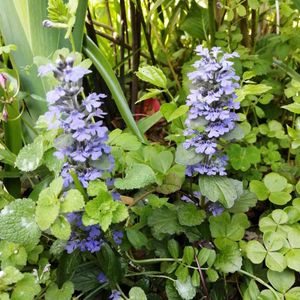 おはようございます☀️ 昨年隣の叔母から株分けして貰ったセイヨウジュウニヒトエ💜 お隣にはチューリップ🌷の球根が潜んでたようで、密着して咲いてます😊