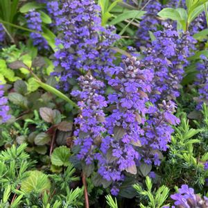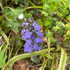 2024.03.25 アジュガが美しい濃青花を咲かせ始めました💙 春になると少し落ち着いた青い絨毯を庭いっぱいに広げてくれます。 明る過ぎない色が好きですね。 葉が特徴的で色々種類があって面白い種です。 繁殖力があるので何年かに1度は間引きますが簡単に出来て良いです。