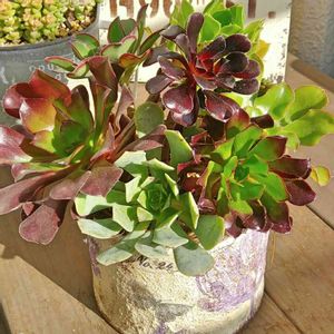 金曜日に風邪をひき、ダウンしてました。( ´-ω-) でも黒法師ちゃんがようやく起きたので、アエオ寄せだけはどうしても作りたかったので、日曜日の午前中、熱も下がってたのでパパっと作ってみました😄 多肉永遠さんでポチったアエオおまかせ5種と、家で夏越した黒法師さんの寄せ植えです♪ おまかせ5種、名札行方不明で、わからなくなってしまった子がいますσ( ̄∇ ̄;) 聞いたこともないカタカナの名前だったのですが…。 永遠さんのアエオのページで、これかな?って子はいるのですが自信持てず(笑) 永遠さん、アエオの種類がとても豊富です✨色々集めたい方にはオススメです💞