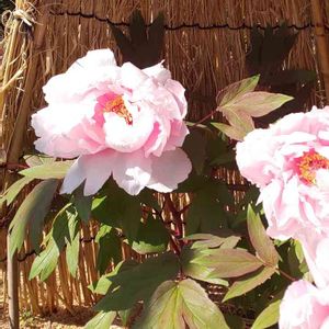 冬牡丹 牡丹 島大臣 わらぼっち(藁囲い)に守られて咲く冬牡丹。 小正月の餅花・繭玉飾りと一緒に。 小正月は花正月とも。 東照宮のぼたん苑で咲く。 2023/0123