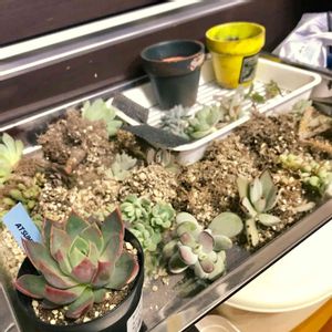 汚いpicで失礼します これから室内で夜の植え替えタイム 多肉を買い控えようと思いつつ 大和の薔薇のキレイさに意思勝てず…笑