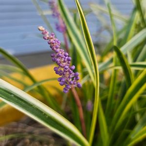 🪴鉢植えの斑入りヤブランが 咲いてくれました💕 むか~し 母が育てていた斑入りヤブランの 🧒ひ孫くらいなんです💝