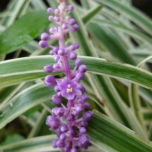 斑入りヤブラン🌿🤍💜 待ち遠しかった~一つ花が咲き始めました💜 🏷2の付く日は斑入りの日 🏷斑入り見付け隊♪No27 🏷しあわせ運べるように 🏷花咲く乙女たち♡