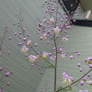 タリクトラム ひょろひょろと細い茎が60センチくらいに伸びて 今にも落ちそうな線香花火の火の玉の様に蕾が付き チラホラ開花してきました