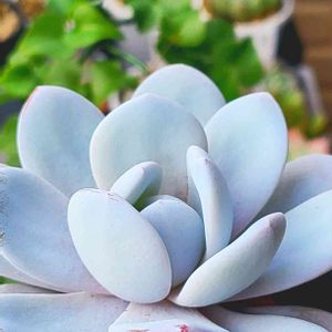 大きくて美白な エケベリア・メキシカンジャイアント✕プリドニスさん😻🤍💗 どちらの親御さんも遺伝子が強烈だけど このコはメキシカンジャイアントさんの方が強く出ていて 棚で魅ただけでは区別出来ず…😸