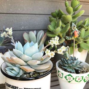 エーデルワイス🌱 パソコンの中の 色白美人さん💕 に一目惚れ 😵💘 おうちで多肉狩りしちゃいました 🤭 実物も とっても美人さんでした 🤗 この子だけには収まらず 他の子も… ( ̄▽ ̄*) ・・・ァハハ