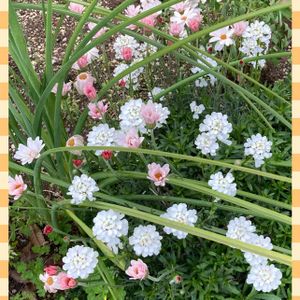 ご近所散歩🍀 イベリス🤍 ピンク色のお花🌸は何でしょうか⁉️ ゴンゴンさんに教えて頂きました♪