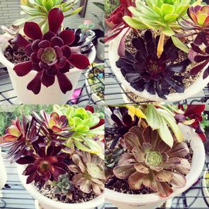 多肉の王国さんで購入したアエオニウム属。 夕映えが美しすぎる。 まだら黒法師と黒法師にも大満足。 八咫の鏡も派手で良い。 愛染錦だけ少し元気がなく傷も多くて残念。