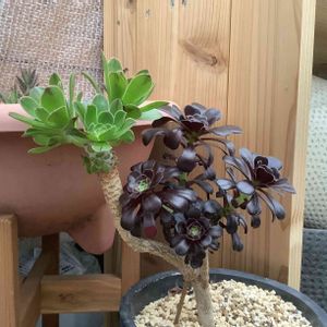 アエオニウムまだら黒法師 初めて花芽が付いてるのだけど 花が咲いたら枯れてしまうとか? 花芽切ってしまった方が良いのかな…