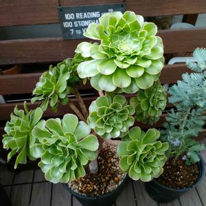 22℃/11℃ ご無沙汰過ぎです笑 去年11月に植え替えた アエオさん3鉢がモリモリになりました