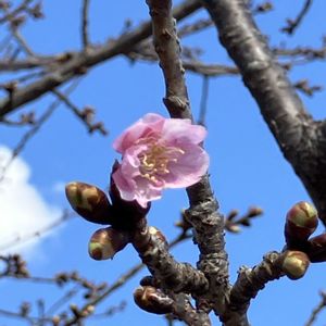 今日は河津桜を見つけちゃいました🌸 戸川公園で2輪だけ咲いてました🌸🌸 蕾はプックリ開花もまじかです😍