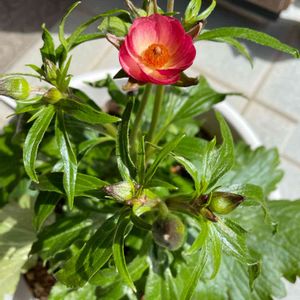ラナンキュラスラックスのリュキアです♪(#^.^#) 濃いピンクが可愛いです♪ お花は小さく咲いてます。 次のお花はもう少し大きなお花が咲くと良いです♪