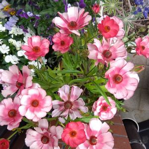 🧡💛💜🩷🧡💛💜🩷 ラックス & ランドセル 🧡💛💜🩷🧡💛💜🩷 ❶ミネルバ&カルキノス ミネルバの花数がヤバいですね。50以上は咲いてます🍀*゜ カルキノスは、ゴールドが煌びやかです💗 ❷ティーバ&リュキア 間違えて混植したのですが、違和感ないですね😊✨ ❸ヘラ&アリアドネ ヘラはお花がとても可愛いです♥️ アリアドネはやっと咲き始めたところです。今後が楽しみ•*¨*•.¸¸♬︎ ❹全員集合とネモフィラです。 全部、満開になるのが楽しみです🎶 ネモフィラが雨で倒れると残念な姿になるのでどうにかならないかな?